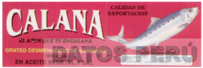 LA ETIQUETA CON LA DENOMINACION CALANA CON LA FIGURA DE PEZ, EN LOS COLORES BLANCO, AMARILLO Y FONDO ROJO, CONFORME AL MODELO ADJUNTO,