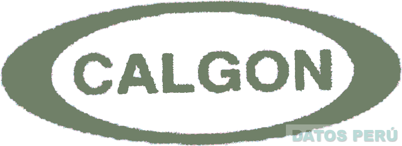 El logotipo conformado por la denominación CALGON escrita en letras características dentro de una figura oval en los colores blanco y negro; conforme al modelo adjunto