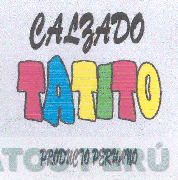 La denominación TATITO escrita en letras características de color rojo, celeste, amarillo y verde con fondo gris claro, en la parte superior se aprecia la palabra CALZADO y en la parte inferior se aprecia la frase PRODUCTO PERUANO sin reivindicar ambos; conforme al modelo adjunto
