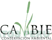 El logotipo con la denominación CAMBIE y CONSERVACION AMBIENTAL escrita en letras características y la figura de una espiga que sale de la letra M, todo en color verde; conforme al modelo adjunto