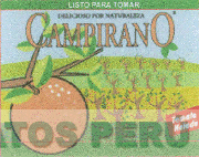 La etiqueta en donde se puede apreciar dos franjas rectangulares, superior e inferior de color verde con borde anaranjado, en la parte superior contiene la frase LISTO PARA TOMAR; asimismo, se observa la figura en primer plano de una naranja color anaranjado con borde negro, con dos hojas bicolor en dos diferentes tonalidades de verde, colgada de una rama color marrón claro con borde marrón oscuro, con el fondo de una pradera con naranjos en tres diferentes tonalidades de color verde y un cielo color celeste; apreciándose la denominación CAMPIRANO escrita en letras características color anaranjado con borde negro debajo de la frase DELICIOSO POR NATURALEZA; conforme al modelo adjunto