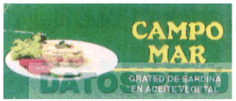LA ETIQUETA DE FONDO VERDE, CON LA DENOMINACION CAMPO MAR CON LETRAS DE COLOR AMARILLO ACOMPAÑADO DE UN PLATO CONTENIENDO LA FIGURA DEL PRODUCTO ENVASADO, EN DETALLE CON COLORES