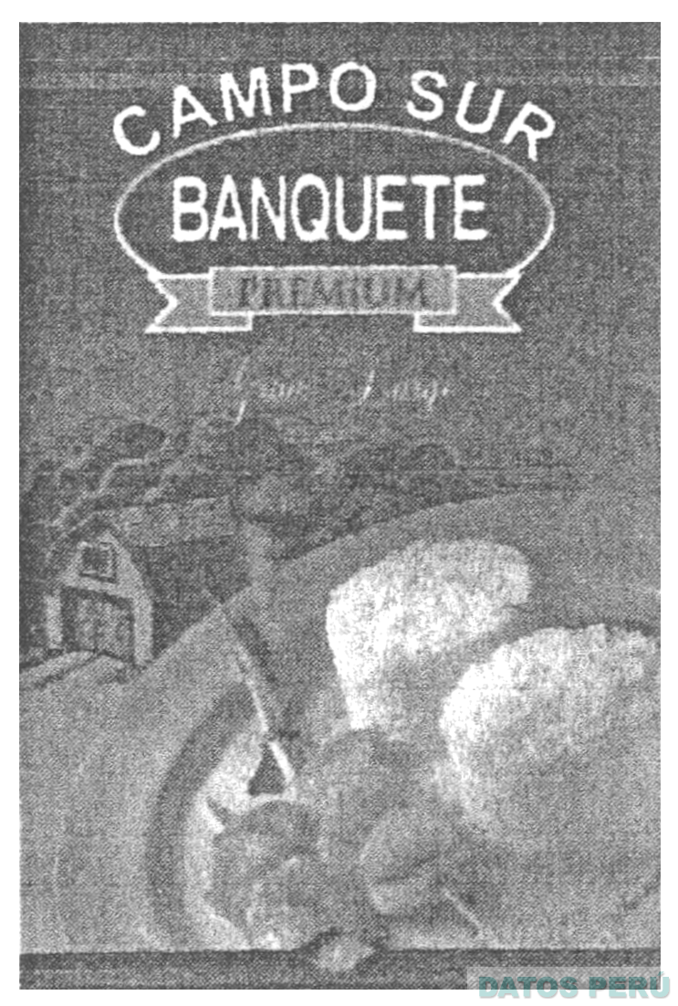 El logotipo conformado por la etiqueta rectangular conteniendo la denominación CAMPO SUR escrita en letras características; el diseño de una figura ovalada conteniendo la denominación BANQUETE escrita en letras características (sin reivindicar); la figura de un lazo conteniendo la denominación PREMIUM escrita en letras características (sin reivindicar); el diseño de casas y la representación de un plato de comida, sin reivindicar colores; conforme al modelo adjunto