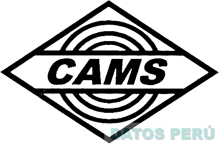 La representación estilizada de un rombo que contiene tres círculos cortados por una franja dentro de la cual se aprecia la denominación CAMS escrita en letras características; conforme al modelo adjunto