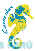 El logotipo conformado por la denominación CARACOLES escrita en letras características y la representación estilizada de la silueta de un caballito de mar que presenta figuras irregulares, todo en los colores turquesa y amarillo; conforme al modelo adjunto