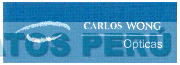 El logotipo conformado por la denominación CARLOS WONG escrita en letras características y subrayada, debajo se aprecia la palabra OPTICAS escrita en letras características, al lado izquierdo se aprecia la figura estilizada de un ojo, todo en los colores azul, verde y blanco; conforme al modelo adjunto