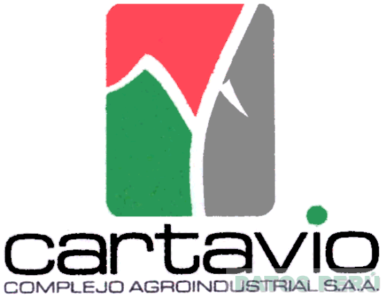 El logotipo de forma cuadrangular con las esquinas redondeadas, dividido en tres áreas por un trazo estilizado de la figura de una caña de azúcar, donde el área superior izquierda es de color rojo, el área inferior izquierda es de color verde, el área de la parte derecha es de color gris, el parte inferior de la figura la denominación CARTAVIO en letras características de color gris, con un punto de color verde sobre la letra I, y las palabras COMPLEJO AGROINDUSTRIAL S.A.A., en letras características de color gris conforme al modelo adjunto