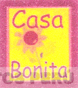 La denominación CASA BONITA escrita en letras características y figura de flor, dentro de un doble marco, en colores rojo, fucsia, amarillo y anaranjado; conforme al modelo adjunto