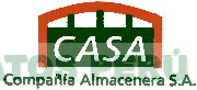 La representación estilizada de un almacén de color rojo, blanco y verde que contiene la denominación CASA escrita en letras características de color blanco y en la parte inferior la denominación COMPAÑÍA ALMACENERA S.A. escrita en letras características de color verde; conforme al modelo adjunto