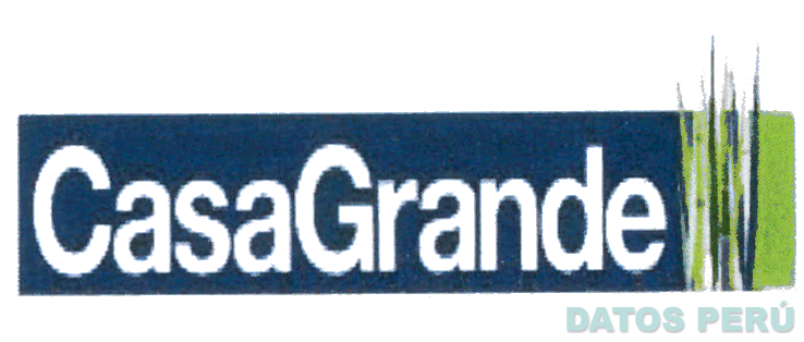 El logotipo conformado por la figura de un rectángulo de color azul donde se aprecia la denominación CASA GRANDE escrita en letras características de color blanco y al lado derecho del rectángulo se aprecian las figuras de unas cañas de color verde agua; sobre un fondo de color verde; conforme al modelo adjunto