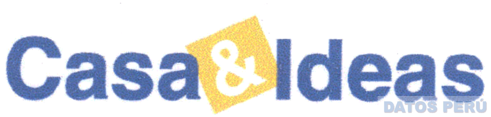 La denominación CASA & IDEAS escrita en letras características de color azul, con el signo & escrito en color blanco sobre un cuadrado de color amarillo; conforme al modelo adjunto