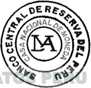 LOS TRES CIRCULOS, EL MAYOR CON EL NOMBRE DEL BANCO CENTRAL DE RESERVA DEL PERU, EL INTERMEDIO CON EL NOMBRE DE CASA NACIONAL DE MONEDA Y EN EL MENOR CON UN SIMBOLO ABSTRACTO DE LAS LETRAS L, A Y M, CONFORME AL MODELO ADJUNTO,