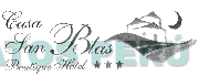 La denominación BOUTIQUE HOTEL CASA SAN BLAS escrita en letras características y al lado derecho la figura de tres casitas y una luna; conforme al modelo adjunto