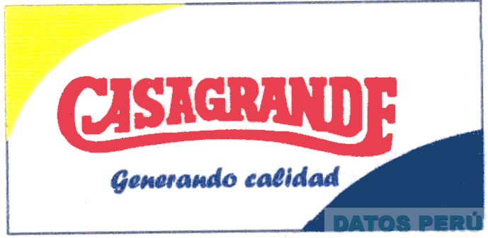 El logotipo conformado por la denominación CASAGRANDE escrita en letras características en color rojo prolongándose la letra C hasta la última letra a manera de subrayado, en la parte inferior la frase GENERANDO CALIDAD escrita en letras características de color azul, todo sobre un fondo de colores amarillo, blanco y azul; conforme al modelo adjunto