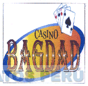 El logotipo conformado por la denominación CASINO BAGDAD escrita en letras características, ubicada en el interior de una figura oval en cuyo extremo superior derecho, se aprecia cuatro naipes que llevan la letra A escrita de manera característica, y los símbolos del trébol, corazón, espada y coco, todo en los colores negro, blanco, rojo, dorado, azul, celeste; conforme al modelo adjunto