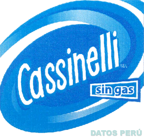 La etiqueta conteniendo la denominación CASSINELLI escrita en letras características y la frase SIN GAS escrita en letras características dentro de un recuadro y la representación estilizada de trazos circulares, todo en los colores blanco, azul y celeste; conforme al modelo adjunto