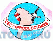 El logotipo conformado por la denominación CECY PRODUCCIONES escrita en letras características y tres estrellas sobre un globo terráqueo en el cual se aprecia el continente sudamericano, el Perú (sin reivindicar) y un ave, al extremo inferior derecho se aprecian notas musicales sobre un pentagrama, todo en la combinación de colores celeste, blanco, rosado, negro, rojo y anaranjado; conforme al modelo adjunto