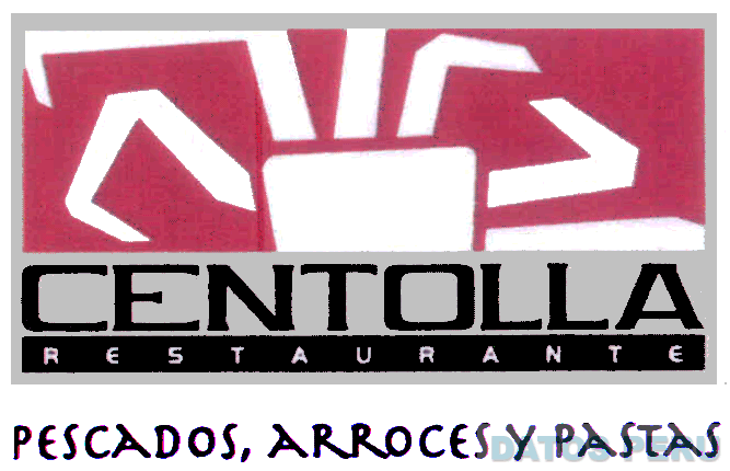 El logotipo conformado por la denominación CENTOLLA escrita en letras características, debajo la palabra RESTAURANTE escrita en letras características dentro de un rectángulo, en la parte superior se aprecia una figura irregular que se asemeja a un cangrejo todo dentro de un rectángulo, en la parte inferior se aprecia las palabras PESCADOS, ARROCES Y PASTAS escritas en letras características, sin reivindicar, en los colores rojo, gris, blanco y marrón; conforme al modelo adjunto