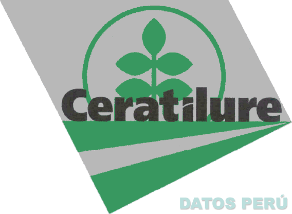 El logotipo conformado por una figura geométrica que contiene la denominación CERATILURE escrita en letras características y debajo de ésta una figura triangular dividida en tres segmentos; como fondo se aprecia una figura semicircular que contiene la representación de una planta con cinco hojas, todo en los colores verde, negro y gris; conforme al modelo adjunto