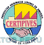 El logotipo conformado por una figura circular que contiene la denominación CERTIPIVES escrita en letras características dentro de una figura rectangular, en la parte superior se aprecian figuras geométricas y en la parte inferior la representación estilizada de dos manos entrelazadas; bordeando la figura circular se aprecia la frase HECHO EN PIVES-PERU y demás frases alusivas, todo en colores amarillo, rojo, crema, rosado, azul y verde claro; conforme al modelo adjunto