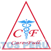 El logotipo conformado por la denominación CARE-FULL escrita en letras características y las letras C y F, estando en la parte central la figura de una vara con dos serpientes enroscadas y dos alas en la parte superior; todo dentro de un triangulo; en color rojo y celeste; conforme al modelo adjunto