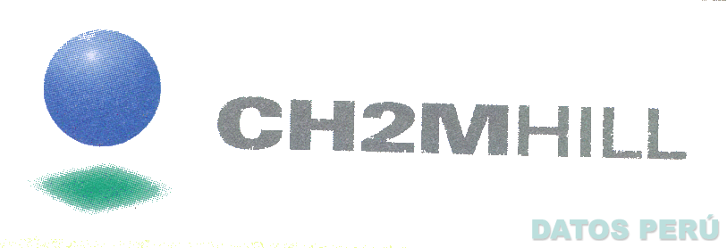El logotipo constituido por la denominación CH2MHILL, escrita en letras características, precedida de la figura de una esfera debajo de la cual aparece la sombra de la misma en los colores azul, celeste, verde y gris plata, todo conforme al modelo adjunto