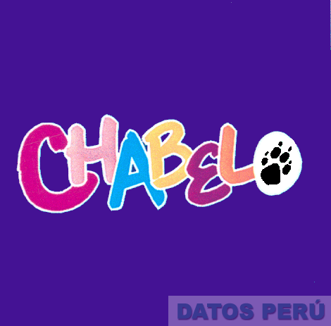 El logotipo conformado por la denominación CHABELO escrita en letras características; en los colores morado, rosado, anaranjado, amarillo y verde, asimismo se aprecia la figura estilizada de una huella (sin reivindicar colores); conforme al modelo adjunto