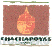 El logotipo conformado por dos líneas paralelas horizontales estilizadas, ambas líneas en color verde suave (código 5757C), un rectángulo estilizado en color marrón oscuro (código 7526C), dentro del cual se observa la representación estilizada de una máscara fúnebre en colores arena (código 7502C) y anaranjado (código 1645C), debajo se observa la denominación CHACHAPOYAS GRADE I escrita en letras características (sin reivindicar la denominación CHACHAPOYAS) en color verde oscuro (código 5605C); conforme al modelo adjunto