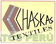El logotipo conformado por la denominación CHASKAS TEXTILES escrita en letras características y al lado izquierdo se aprecia una figura irregular que se asemeja a un manto y que presenta en su interior una franja que contiene figuras irregulares; todo dentro de una figura rectangular; en los colores rojo, negro, blanco y amarillo; conforme al modelo adjunto