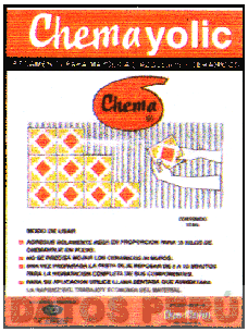 LA ETIQUETA DE COLOR BLANCO, ANARANJADO Y NEGRO, DE FORMA CUADRANGULAR, EN LA QUE APARECE LA DENOMINACION CHEMAYOLIC EN ESCRITURA CARACTERISTICA EN COLOR BLANCA, SOBRE LA QUE SE ENCUENTRA LA DENOMINACION PEGAMENTO PARA MAYOLICAS, AZULEJOS Y CERAMICOS EN LETRAS DE COLOR BLANCO (SIN REIVINDICAR); DEBAJO, LA DENOMINACION CHEMA EN LETRAS NEGRAS SIN REIVINDICAR Y DISEÑO CARACTERISTICO, CONFORME AL MODELO ADJUNTO,