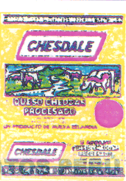 LA ETIQUETA ENVOLTURA DE FONDO AMARILLO, LOGOTIPO CHESDALE EN COLORES AZUL, BLANCO Y ROJO Y FIGURA DE PRADERA CON VACAS EN LOS COLORES VERDE, CELESTE, BLANCO, Y NEGRO, SEGUN MODELO ADJUNTO,