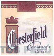 La denominación CHESTERFIELD MAMBAYA GOLD escrita en letras características, al lado izquierdo se aprecia el diseño de una figura rectangular, y sobre ésta, una corona, en la parte superior una franja horizontal con diversas figuras geométricas, y en la parte central superior el término 20 CIGARETTES, donde el vocablo CIGARETTES se aprecia dentro de una cinta ondulante, sin reivindicar colores; conforme al modelo adjunto