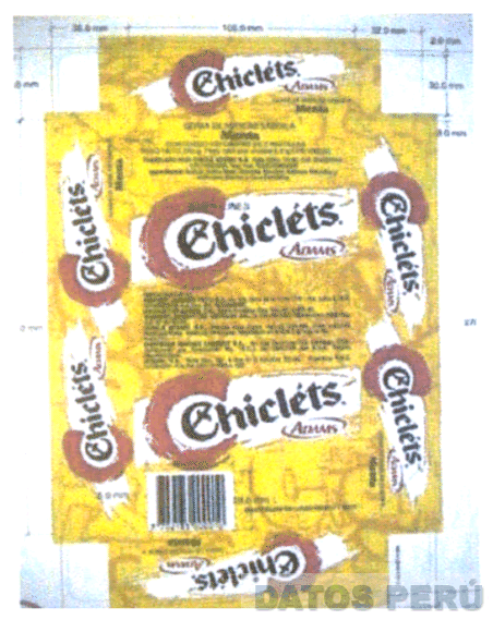 LA DENOMINACION CHICLETS ESCRITA EN FORMA ESTILIZADA, INCLUYENDO EL DISEÑO DE UN SEMICIRCULO COLOR ROJO, PINTADO DE MANERA NO UNIFORME, SIN REIVINDICAR LOS DEMAS ELEMENTOS DEL EMPAQUE