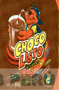 La etiqueta conformada por la denominación CHOCO LISTO escrita en letras características, detrás se aprecia la representación caricaturizada de un perro con vestimenta bebiendo de un vaso de chocolate con sorbete, además de diversas franjas curvas, en la parte inferior se aprecia la silueta de una persona dentro de una figura circular, además de diversas frases alusivas al producto (sin reivindicar), todo sobre un fondo irregular y en la combinación de colores amarillo, anaranjado, marrón, rojo, azul, celeste, verde y fucsia; conforme al modelo adjunto