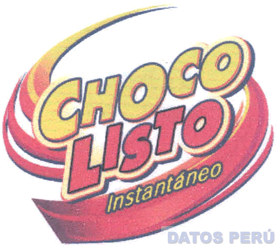 La denominación CHOCOLISTO escrita en letras características rodeada por cuatro franjas curvas en la combinación de los colores rojo y amarillo; conforme al modelo adjunto