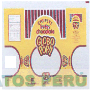 EL EMPAQUE RECTANGULAR DE COLOR AMARILLO, EN LA PARTE SUPERIOR APARECE UN ARCO CON FRANJAS VERTICALES DE COLOR MARRÓN QUE CONTIENE EN SU SEMICÍRCULO LA FRASE CHUPETE LECHE CHOCOLATE ESCRITA EN LETRAS CARACTERÍSTICAS DE COLOR MARRÓN Y BLANCO, DEBAJO SE APRECIA LA DENOMINACIÓN GLOBO POP!! ESCRITA EN LETRAS CARACTERÍSTICAS DE COLOR AMARILLO CON BORDES MARRONES, EN LA PARTE INFERIOR APARECE UN OVALO DE COLOR BLANCO CON BORDES MARRONES, ACOMPAÑADO EN CADA UNO DE SUS EXTREMOS DE UN SEMI OVALO DE COLOR BLANCO CON BORDES MARRONES Y ENTRE ELLOS LA DENOMINACIÓN GLOBO POP!! ESCRITA EN LETRAS CARACTERÍSTICAS; CONFORME AL MODELO ADJUNTO