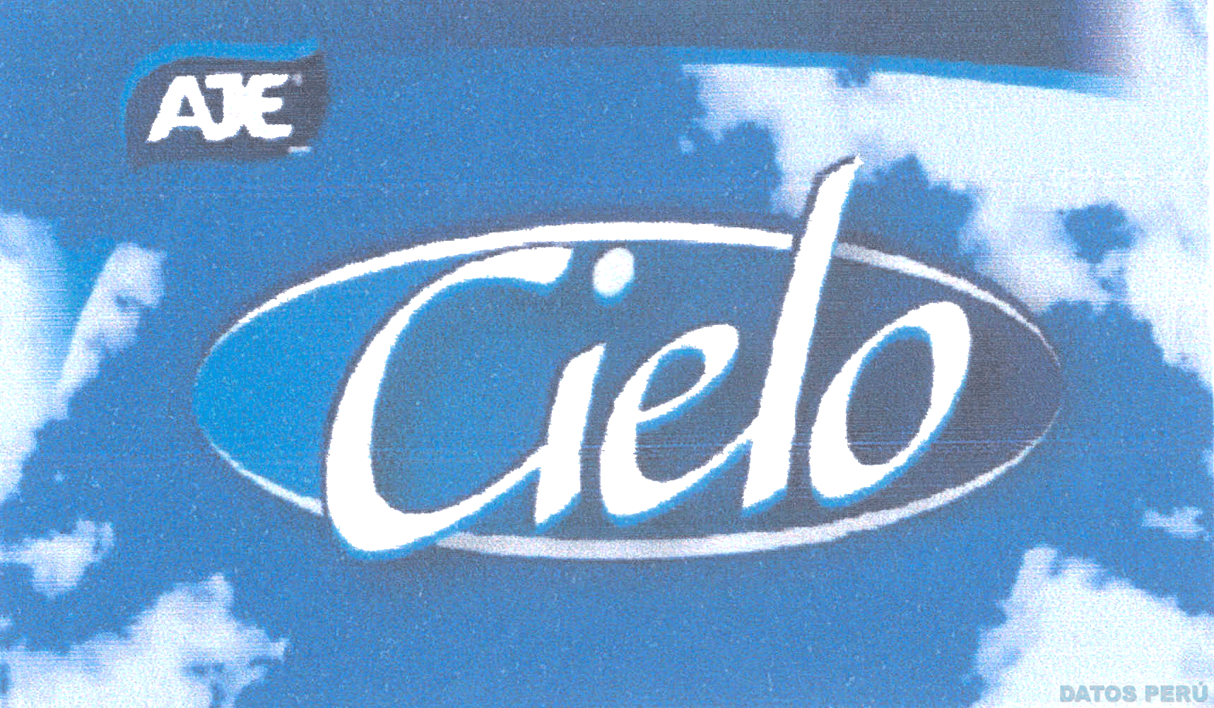 El logotipo conformado por la denominación CIELO escrita en letras características dentro de una figura ovalada sobre un fondo que representa un cielo estilizado, en la parte superior izquierda se aprecia la denominación AJE escrita en letras características dentro de una figura irregular, todo en la combinación de colores azul, celeste y blanco en distintas tonalidades; conforme al modelo adjunto