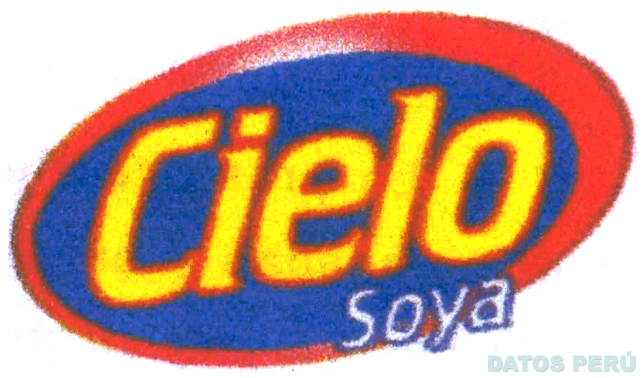 El logotipo conformado por la denominación CIELO y en la parte inferior la palabra SOYA, ambas escritas en letras características, todo dentro de una figura ovoide bordeada; en los colores azul, blanco, amarillo y rojo; conforme al modelo adjunto