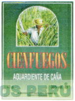 LA ETIQUETA RECTANGULAR EN COLOR VERDE CONTENIENDO UN SEMI OVALO CON LA FIGURA DE UN CAMPESINO CORTANDO CAÑA, EN LOS COLORES BLANCO Y VERDE. DEBAJO APARECE LA DENOMINACION CIENFUEGOS ESCRITA EN LETRAS CARACTERISTICAS EN LA COMBINACION DE COLORES NARANJA Y AMARILLO; Y LA DENOMINACION AGUARDIENTE DE CAÑA ESCRITA EN COLOR BLANCO, CONFORME AL MODELO ADJUNTO,