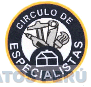 El logotipo conformado por la denominación CIRCULO DE ESPECIALISTAS escrita en letras características y la figura de un círculo con la imagen de una casa y cuatro herramientas estilizadas, todo en los colores amarillo, gris, blanco y negro; conforme al modelo adjunto