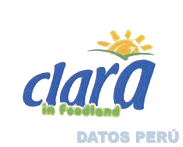 El logotipo conformado por la denominación CLARA IN FOODLAND escrita en letras características, y el diseño estilizado de el sol y una figura irregular, todo en los colores azul, verde en diversas tonalidades y amarillo; conforme al modelo adjunto