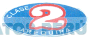 El logotipo conformado por la denominación CLASE 2 AREQUIPA escrita en letras características dentro de una figura ovalada, en colores blanco, rojo y celeste; conforme al modelo adjunto