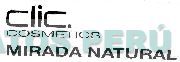 El logotipo conformado por la denominación CLIC. COSMETICS MIRADA NATURAL escrita en letras características, sin reivindicar colores; conforme al modelo adjunto