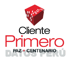 El logotipo conformado por la denominación CLIENTE PRIMERO PAZ CENTENARIO escrita en letras características, sobre la denominación CLIENTE se aprecia el diseño de un cubo, y entre las denominaciones PAZ y CENTENARIO un cuadrado, todo en la combinación de colores negro, rojo y blanco; conforme al modelo adjunto