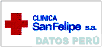 El logotipo rectangular conformado por la denominación CLINICA SAN FELIPE S.A. escrita en letras características de color azul y la figura característica de una cruz de color rojo; conforme al modelo adjunto