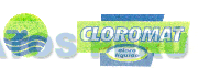 El logotipo conformado por el diseño estilizado de un círculo de fondo de color verde con la silueta de una persona nadando sobre olas de color azul, al extremo derecho se aprecia la denominación CLOROMAT escrita en letras características de color blanco con perfil azul sobre dos trapecios de color azul y verde; conforme al modelo adjunto