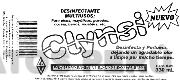LA ETIQUETA BLANCA EN CUYA PARTE CENTRAL SE APRECIA LA DENOMINACIÓN CLYNSI ESCRITA EN LETRAS CARACTERÍSTICAS, LA MISMA QUE SE ENCUENTRA CORTADA HORIZONTALMENTE Y EN FORMA ONDEANTE, APRECIÁNDOSE EN LA PARTE INFERIOR IZQUIERDA UN ROMBO EN CUYO INTERIOR SE APRECIA LA FRASE LA V; Y DEMÁS FRASES ALUSIVAS AL PRODUCTO; CONFORME AL MODELO ADJUNTO