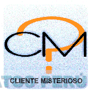 El logotipo conformado por la denominación CM CLIENTE MISTERIOSO escrita en letras características y la representación estilizada de un signo de interrogación en los colores blanco, plomo y anaranjado; asimismo, el fondo es de color blanco y gris; conforme al modelo adjunto