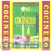 El logotipo conformado por la denominación COCINERO escrita en letras características como fondo la imagen de una cocina y dos palos de fósforo, uno encendido y otro con un gorro de cocinero, en los colores amarillo, guinda, verde, negro, plomo, blanco, rojo, beige y anaranjado; conforme al modelo adjunto
