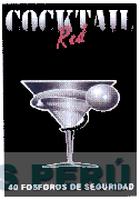 El logotipo rectangular conformado por la denominación COCKTAIL RED escrita en letras características, debajo la representación estilizada de una copa conteniendo líquido, una aceituna y una cinta envolviendo la copa, debajo la frase 40 FOSFOROS DE SEGURIDAD (sin reivindicar), todo en la combinación de colores rojo, negro, blanco, plomo; conforme al modelo adjunto